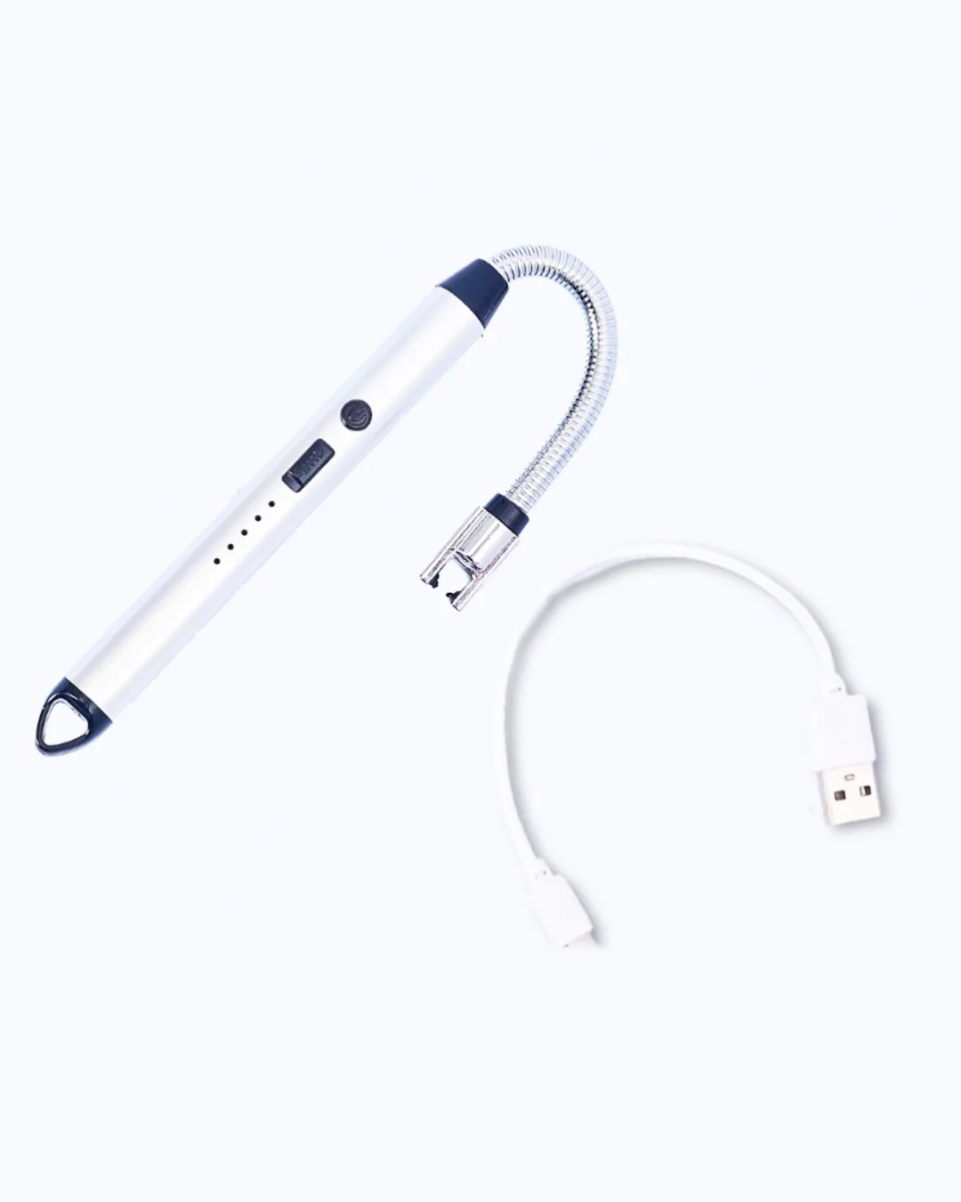 Light your candles with ease and style using these sleek electric candle lighters, available in silver, black, and gold finishes. Designed with a flexible neck, they provide maximum precision and convenience, allowing you to reach even the most challenging wicks. Rechargeable and eco-friendly, these lighters eliminate the need for traditional fuel, offering a flameless, windproof arc for safe and efficient use. Their minimalist design and luxurious finishes make them both functional and elegant—a perfect accessory for any candle enthusiast. Elevate your candle-lighting experience with these modern and sophisticated tools!